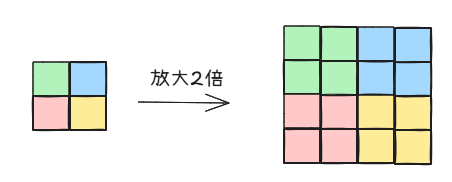 把一个m*n的矩阵放大k倍,使得原矩阵中的任意一点都变成k行k列的小矩阵。